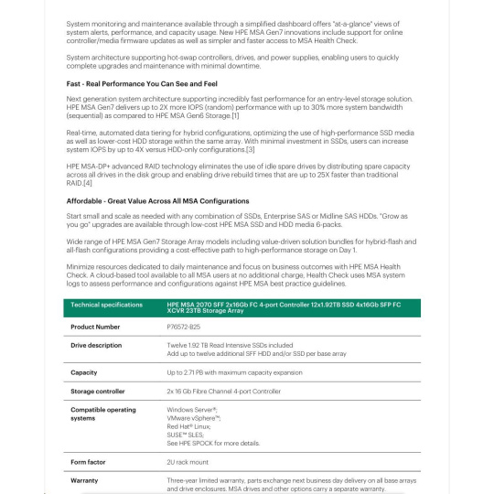 HPE MSA 2070 SFF 23TB (12x1.92TB R0Q47A, 2x16G FC4pController, 4x16Gb SFP-SFP-FCXCVR C8R24B) Smart Choice.