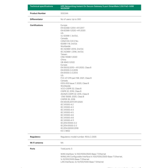 HPE Networking Instant On Secure Gateway 5-port SmartRate 2.5G PoE+ 64W SG2505P