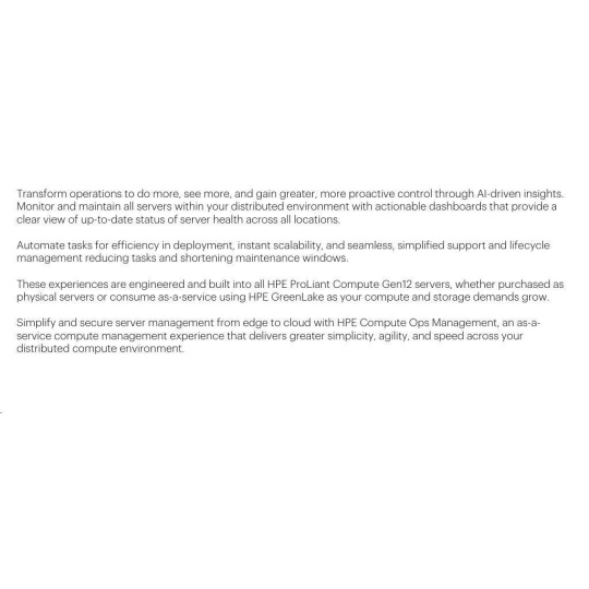 - Included: HPE iLO 7 Standard, Intelligent Provisioning, HPE OneView Standard