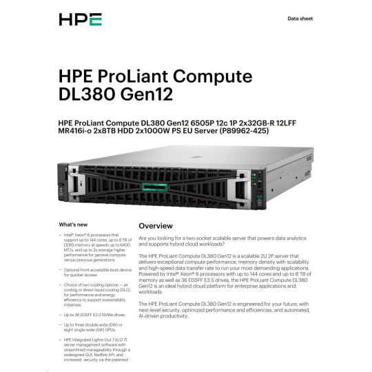 HPE PL DL380g12 6505P (2.2/12C) 2x32G (P69727) 12LFF 2x8TB MR416i-o 2x1000W 10GbE NBD333 Smart Choice