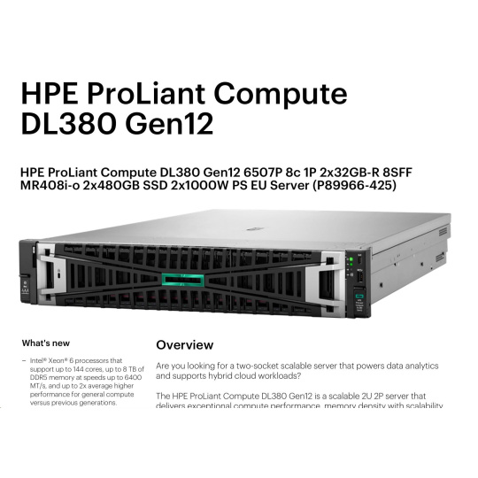 HPE PL DL380 Gen12 6505P (2.2/12C) 2x32G (P69727) 2x480G MR408i-o 8SFF 2x1000W 10GbE NBD333 Smart Choice.