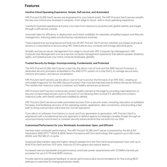Infrastructure management HPE iLO Standard with Intelligent Provisioning (embedded), HPE OneView Standard (requires download) HPE iLO Advanced, HPE iLO Advanced Premium Security Edition, HPE OneView Advanced (require licenses) and HPE Compute Ops Management