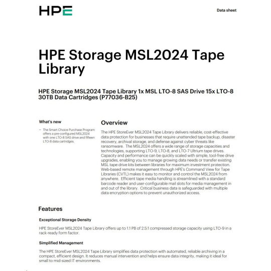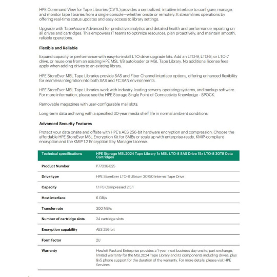 HPE Storage MSL2024 TapeLibrary (AK379A+LTO8SASDriveQ6Q68A+15xQ2078A LTO8 30TBDataCartridges+Q2015ABarCodeLabelPack) SC