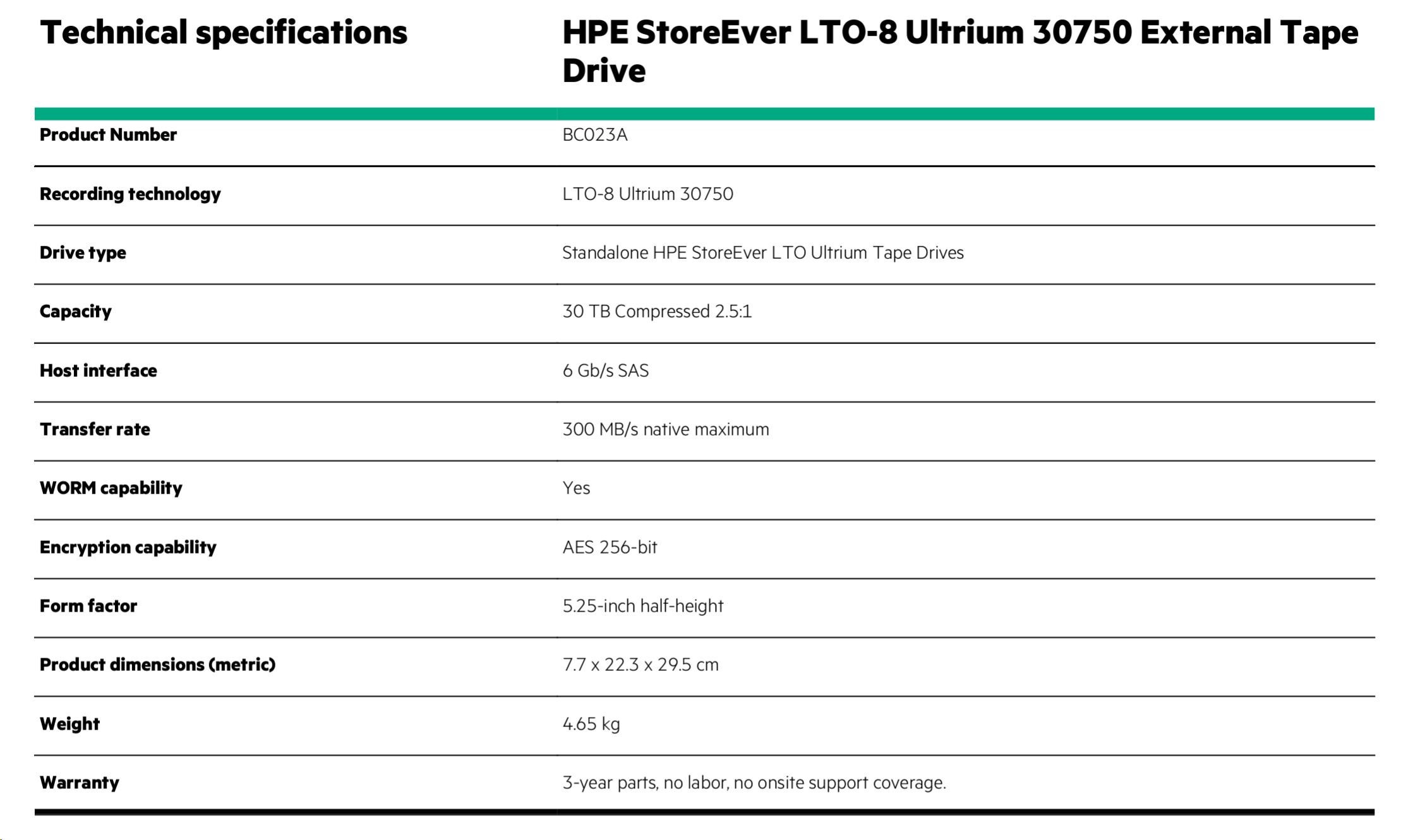 • HPE StoreEver LTO-8 Ultrium 30750 External Tape Drive