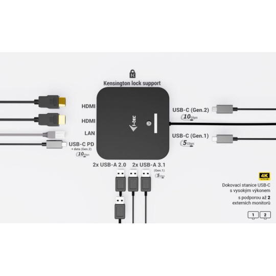 i-tec USB-C Dual HDMI Docking Station s Power Delivery 100 W