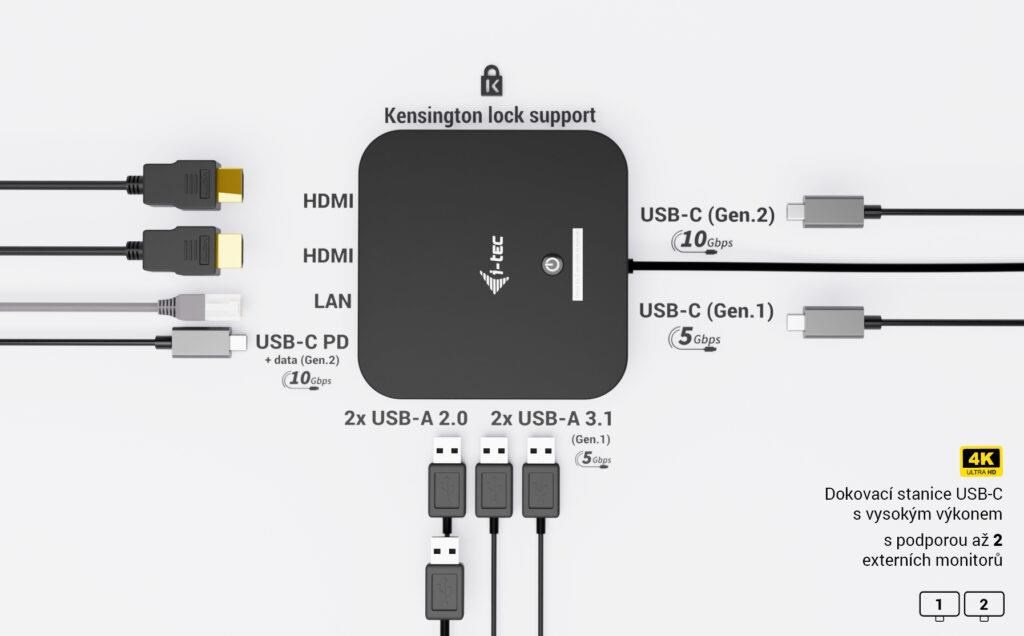 i-tec USB-C Dual HDMI Docking Station s Power Delivery 100 W