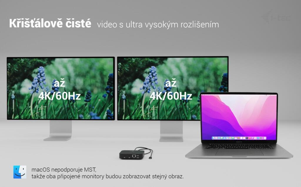 - 2× HDMI s podporou až dvoch monitorov v rozlíšení 4K pri 60 Hz (macOS podporuje iba jeden rozšírený displej).