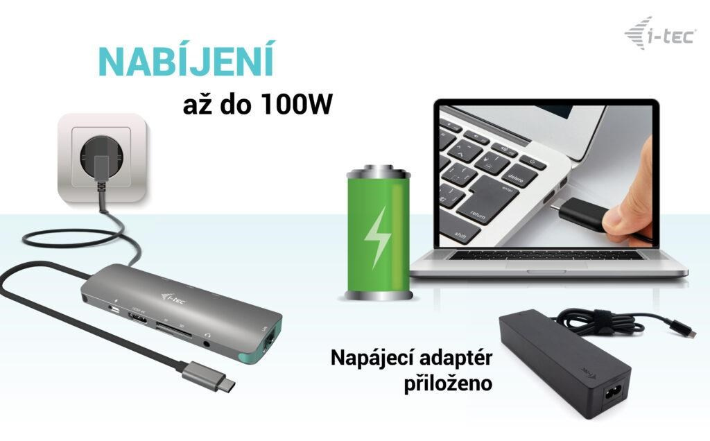 - Power delivery: až 100 W (s priloženým napájacím adaptérom s celkovým výkonom 100 W)