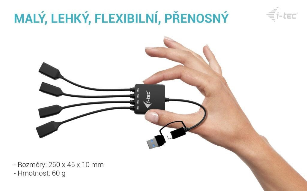 - Malý, efektívny a flexibilný USB-C/A káblový HUB