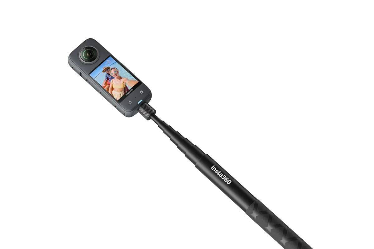 Selfie tyč pre akčné kamery Insta360. Nastaviteľná dĺžka 23,3cm až 114 cm. Materiál: hliník. Spôsob uchytenia: 1/4" skrutka. Tyč je automaticky odstránená z vyhotovených záberov.