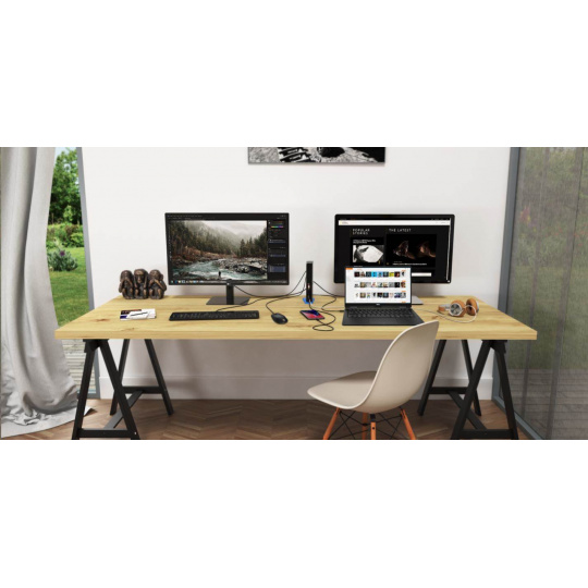 Univerzálna dokovacia stanica, ktorú možno používať prakticky s akýmkoľvek notebookom, pretože ju možno pripojiť k akémukoľvek portu USB (USB 3.0, USB-D, Thunderbolt 3 alebo dokonca staršie USB 2.0).