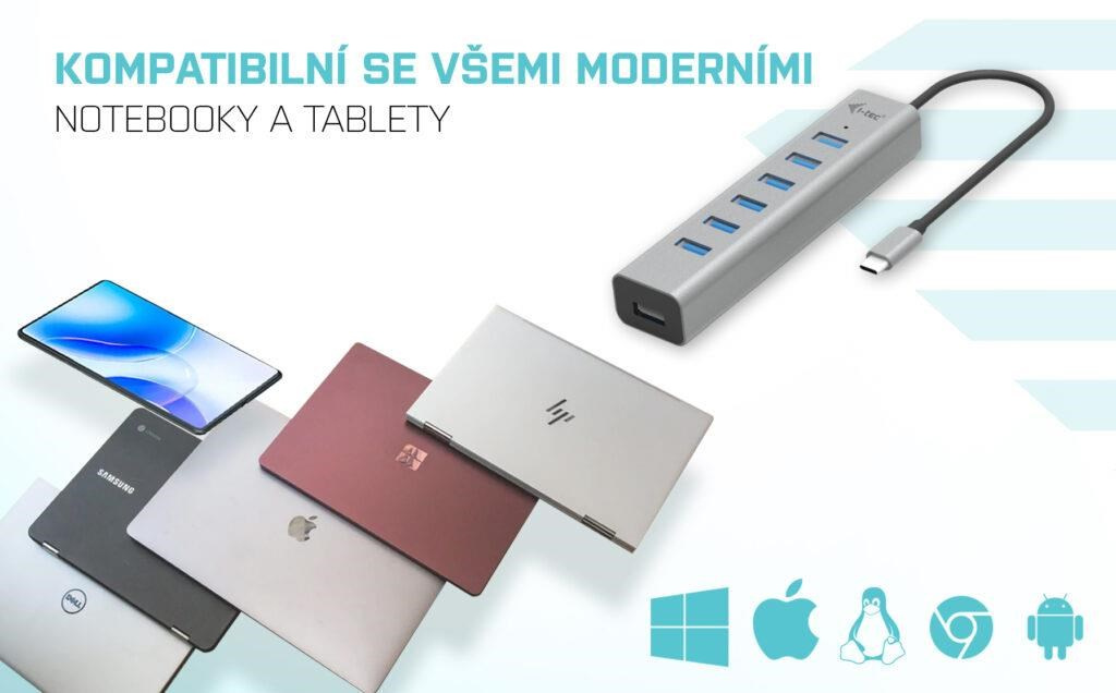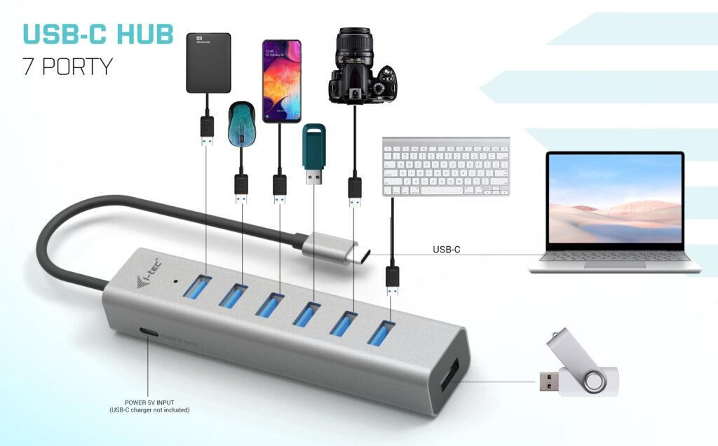 i-tec USB-C Nabíjací Kovový HUB 7 Portov
