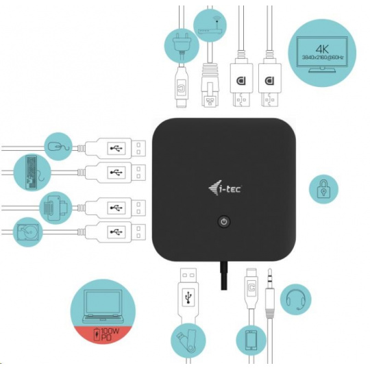 dokovacia stanica i-tec USB-C s dvoma displejmi, Power Delivery 100 W + univerzálna nabíjačka i-tec 112 W