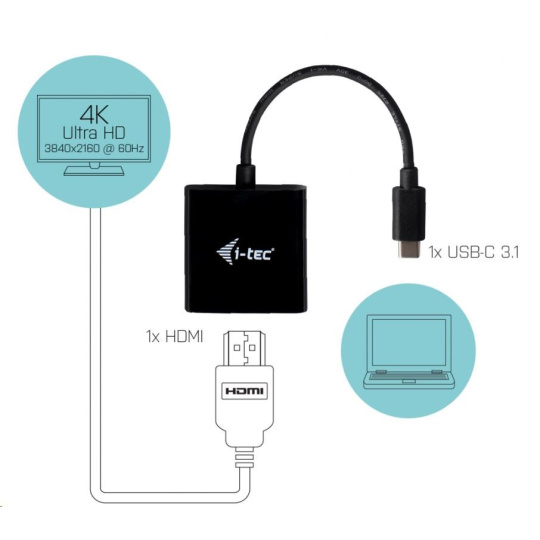 Dlhý popis produktu: i-tec USB-C na HDMI video adaptér 60 Hz, 1x HDMI 4K Ultra HD, kompatibilný s Thunderbolt 3