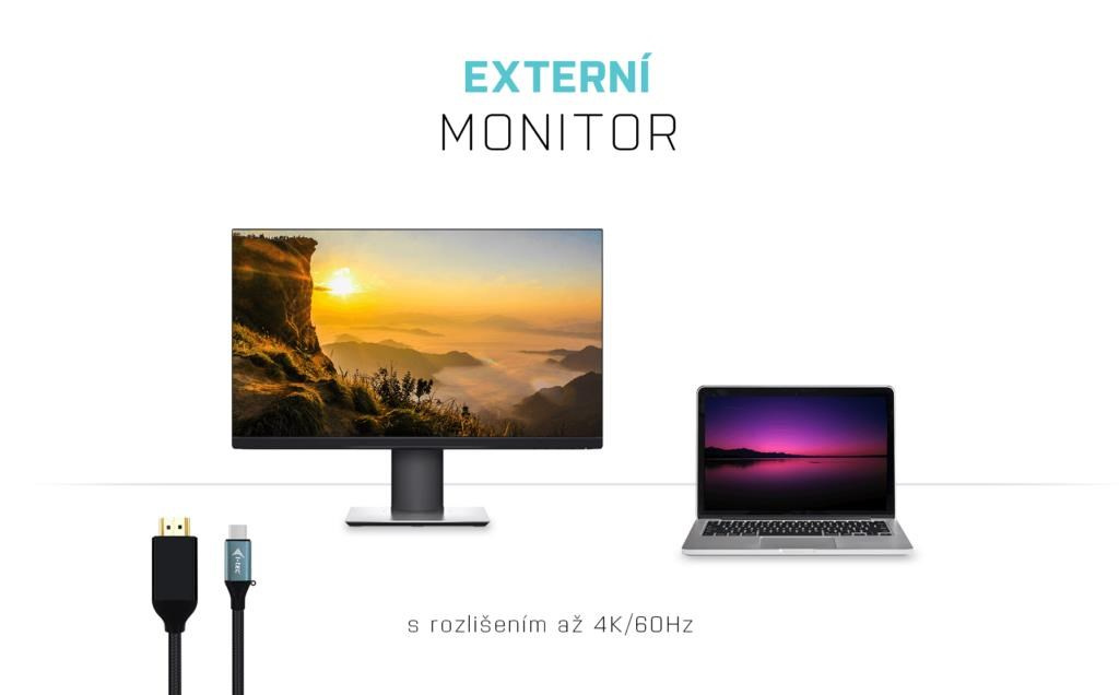 Rozšírte svoj pracovný stôl o externý monitor HDMI prostredníctvom nového konektora USB-C alebo Thunderbolt 3. Tento káblový adaptér podporuje prenos rozlíšenia 4K Ultra HD až do 3840 x 2160 pixelov vrátane zvukového signálu.