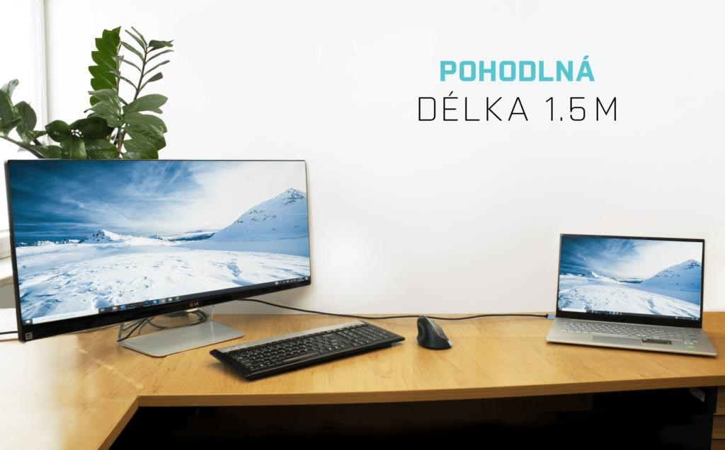 Káblový adaptér je vhodný na použitie so všetkými notebookmi, ktoré sú vybavené konektorom USB-C s podporou prenosu videa (režim DisplayPort alt) alebo konektorom Thunderbolt 3 (vrátane Apple MacBook 2015 alebo Apple MacBook Pro 2016 a novších). Konektory USB-C a Thunderbolt 3 majú viacero výhod.