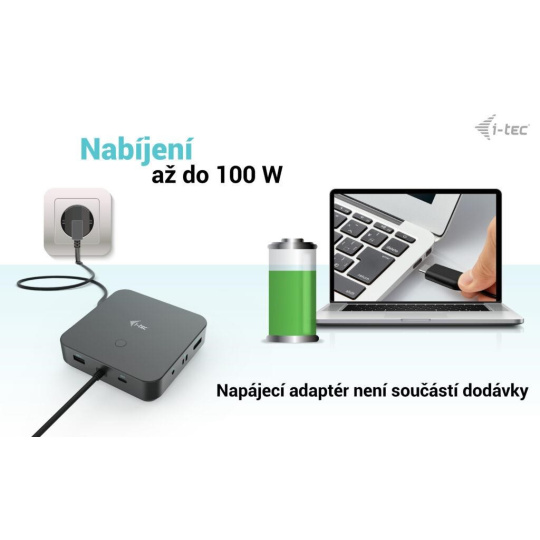 Poznámka: Napájací zdroj nie je súčasťou dodávky. Dokovaciu stanicu je možné použiť s napájacím zdrojom dodávaným s notebookom alebo si môžete napájací zdroj zakúpiť samostatne, napríklad i-tec CHARGER-C112W/UK. Alternatívne môžete zakúpiť produkt C31TRI4KDPDPRO100/UK, ktorý už obsahuje napájací zdroj.