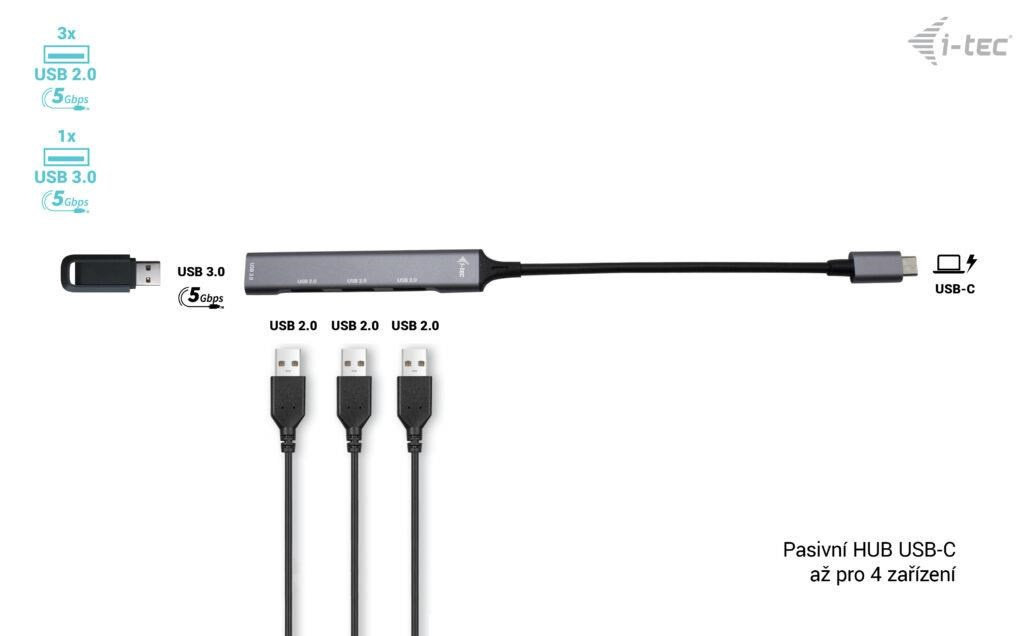 - Pasívny HUB USB-C s možnosťou pripojenia až 4 zariadení