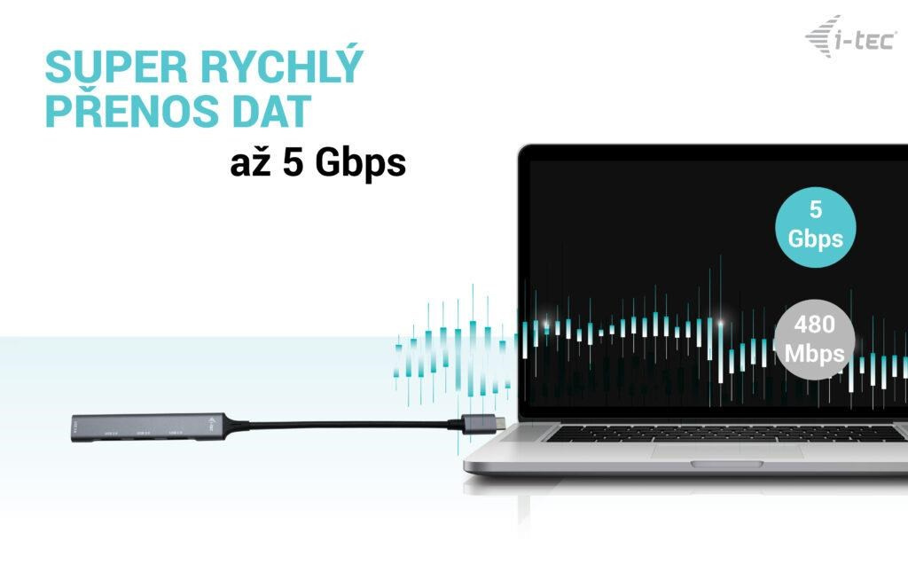 S týmto rozbočovačom získate 4 ďalšie USB: štandardné USB 3.0 a tri USB 2.0 portov. Pripojte externú klávesnicu a myš, prenášajte dáta alebo filmy z flash disku USB rýchlosťou až 5 Gb/s alebo nabíjajte mobilné zariadenia (štandardná rýchlosť USB 0.9A).