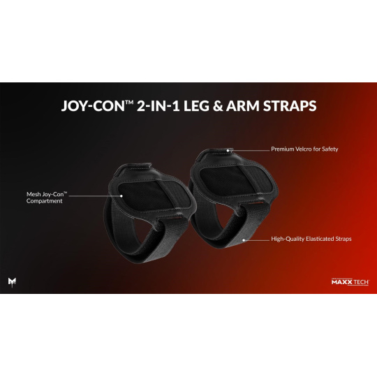 2x 2v1 popruhy na ruky a nohy – dajú sa nastaviť pre všetky vekové kategórie, aby vám ovládač Joy-Con™ pevne sedel
