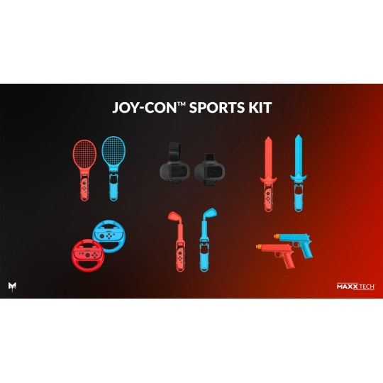 Obsah balenia: 2 závodné volantom, 2 tenisové/badmintonové rakety, 2x 2v1 popruhy, 2 meče, 2 golfové palice, 2 pištole, 2x rukoväte Joy-Con, 2x adaptéry.