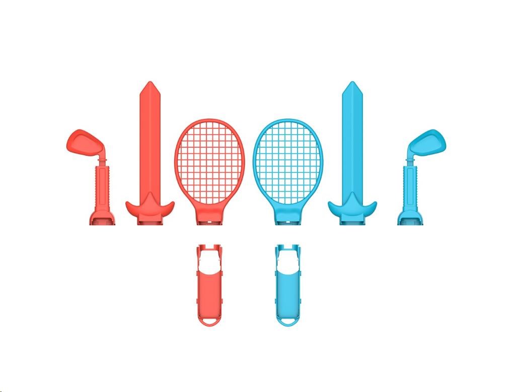 Obsah balenia: 2 závodné volanty, 2 tenisové/badmintonové rakety, 2x 2v1 popruhy, 2 meče, 2 golfové palice, 2 pištole, 2x rukoväte Joy-Con, 2x adaptéry.