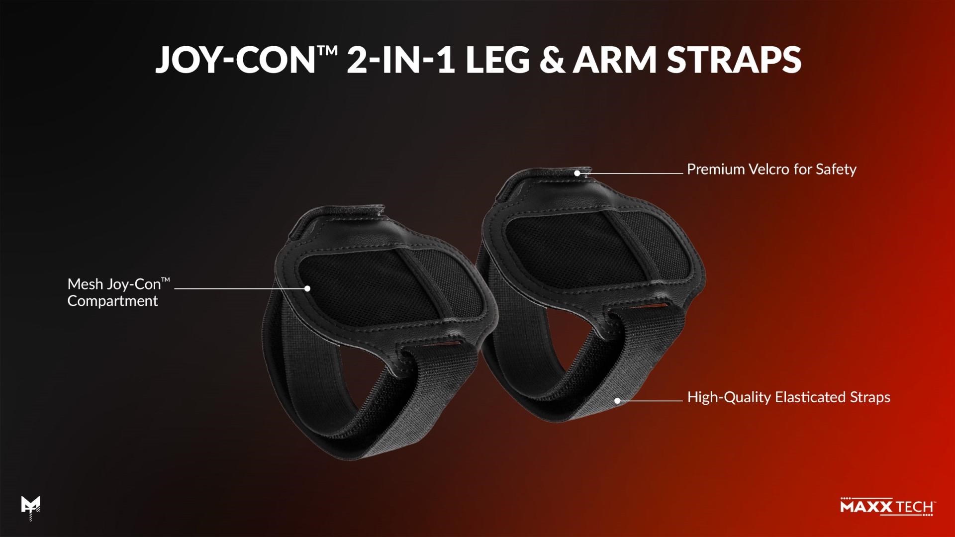 2x 2v1 popruhy na ruky a nohy – možno ich nastaviť pre všetky vekové kategórie, aby vám ovládač Joy-Con™ pevne sedel