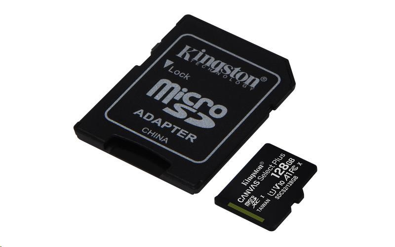 Karta Kingston 128GB micSDXC Canvas Select Plus 100R A1 C10 + adaptér SD