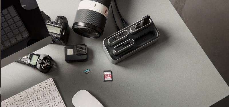 Workflow Station a čítačky spoločnosti Kingston poskytujú flexibilný systém na prenos videa, fotografií a zvuku z viacerých zdrojov naraz.* Urýchlite svoj postprodukčný pracovný postup a vytvorte si nastavenie na odosielanie súborov, ktoré vyhovuje vašim potrebám. Dokovacia stanica Workflow Station Dock sa dá prispôsobiť, takže môžete používať len USB miniHub, čítačky SD alebo microSD, ktoré si vyžaduje vaše snímanie. Či už natáčate viacero kamier v rozlíšení 4K/8K s prenosnými zvukovými rekordérmi pre každého hostiteľa, alebo natáčate B-Roll s dronmi a GoPros, k doku môžete súčasne pripojiť až štyri čítačky a rýchlo prenášať zábery. Zariadenie Workflow Station a čítačky podporujú rozhranie USB 3.2 rýchlosti, vďaka ktorým sa dostanete k postprodukčnému procesu rýchlejšie ako kedykoľvek predtým. Čítačky kariet sa dajú používať aj na cestách, čo zvyšuje ich flexibilitu. Keď potrebujete fotografovať na mieste, jednoducho si vložte potrebný rozbočovač alebo čítačky do tašky a pripojte ich k notebooku pomocou priloženého kábla USB-C®.