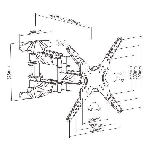 Kvalitný otočný sklápací držiak TV Fiber SP500 Špičkový nástenný držiak TV 32-60", otočný, sklápací +2° / -15°, vzdialenosť 49-482mm, korekcia roviny +/- 3°, systém vedenia káblov, jednoduché polohovanie, VESA 75x75 až 400x400, nosnosť 40kg Televízny držiak, ktorý vďaka svojmu špičkovému spracovaniu a krásnemu dizajnu môžeme zaradiť k vyššej triede, pritom výhodná cena zodpovedá základným držiakom. Držiak Fiber SP500 je vhodný pre zavesenie všetkých typov TV, ktoré majú hmotnosť do 40kg a ktoré podporujú VESA štandardy 75x75 až 400x400. Nastavenie televízie do požadovanej polohy je veľmi jednoduché, obrazovku je možné otáčať do strán, naklápať, odsúvať alebo priťahovať ku stene, upraviť jej rovinu. Všetku nepeknú kabeláž ľahko skryjete pod kryty ramien a nebudú nikde prekážať. Unikátna konštrukcia TV držiaka zabezpečí, že sa ramená nebudú proväšovať, televízia vždy spoľahlivo drží v nastavenej pozícii a uchytenie bude vždy spoľahlivé. Inštalácia držiaka na stenu je veľmi jednoduchá a intuitívna, zvládne ju aj laik, montážny materiál je súčasťou balenia. Kvalitu tohto TV držiaka podčiarkuje 5-ročná záruka. Vynikajúci nástenný držiak na zavedenie LCD, LED, plazmových TV s uhlopriečkou 32-60". Držiak TV otáča do strán, naklápa, nastavuje dĺžku, korekcia roviny. Vedenie káblov, TOP dizajn, držiak za skvelú cenu - Fiber SP500 Technické údaje: maximálna zaťaženie 40kg podporuje VESA štandardy 75x75 až 400x400 zavesenie televízorov s uhlopriečkou 32" až 60" otáčanie do strán +/- 60° nakoľko nahor aj nadol +2° / -15° korekcia roviny +/- 3° minimálna vzdialenosť TV od steny 49mm maximálna vzdialenosť TV od steny 482mm systém na skryté vedenie káblov kvalitná a spoľahlivá oceľová konštrukcia, nevznikajú vôle ani proväšenie moderný krásny dizajn inštalačný materiál súčasťou balenia veľmi jednoduchá inštalácia záruka 5 rokov Nástenný otočný a sklápací, výsuvný držiak na LCD LED TV 32-60", TOP kvalita a krásne prevedenie Fiber SP500 Televízny držiak Fiber SP500 podporuje VESA štandardy na zavesenie TV: VESA 75x75 VESA 100x100 VESA 200x100 VESA 200x200 VESA 300x200 VESA 300x300 VESA 400x200 a 200x400 VESA 400x400 držiak nepodporuje VESA 400x300 ani 300x400 Držiak SP500 je vhodný na všetky značky a typy televízií, ktoré podporujú ktorýkoľvek z vyššie uvedených VESA štandardov a ich hmotnosť nie je vyššia ako 40kg.