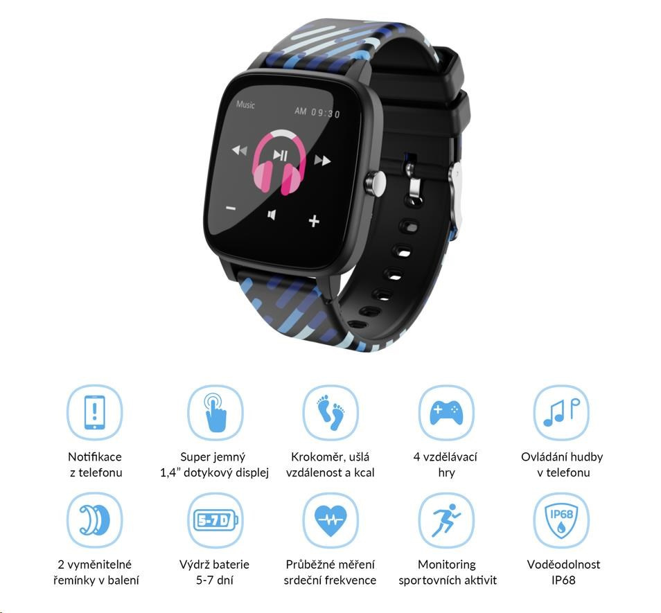 Prostredie hodiniek a aplikácie je úplne v češtine, takže ovládanie nebude pre dieťa žiadny problém. Hodinky je možné prepínať do ďalších jazykov a podporovať tak výučbu angličtiny a ďalších jazykov.