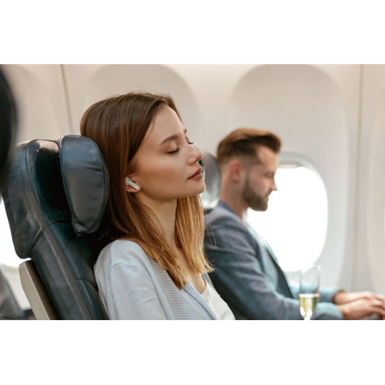 Naše hybridné ANC znamená, že sa môžete ponoriť do svojej personalizovanej zvukovej krajiny a prežívať každý úder, rytmus a melódiu vo svojich obľúbených skladbách, akoby bol umelec priamo vedľa vás. Táto funkcia využíva tri špecializované mikrofóny v každom náušníku na zníženie okolitého hluku až o 40 dB bez vplyvu na vernosť zvuku. Hybridný ANC šikovne kombinuje mikrofóny smerujúce dovnútra a von, aby účinnejšie pôsobil proti okolitému hluku v širokom spektre. takže môžete naplno oceniť svoju hudbu a vychutnať si krištáľovo čisté rozhovory. Keď sa však potrebujete naladiť na okolitý svet, jednoducho zapnite Transparency mode, ktorý zosilní vonkajšie zvuky bez toho, aby ste museli vybrať slúchadlá.