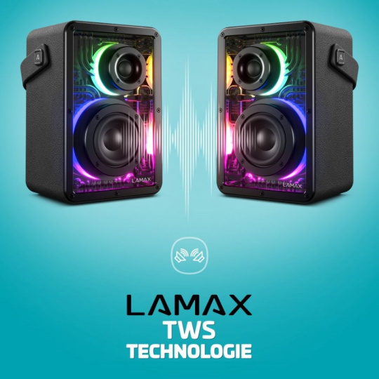 Usporiadaj večierok, na ktorý nikto nezabudne, alebo si vychutnaj počúvanie hudby a podcastov, ako keby bol interpret v miestnosti s tebou. Je to jednoduché, pretože na scénu prichádza LAMAX CyberWave1, párty reproduktor so 4 nastaviteľnými Cyber LED efektmi, ktoré každého ohúria. Jeho telo s dvojpásmovými reproduktormi duní výkonom až 50 W a technológia BeatBass® ťa úplne pohltí úžasným zvukom, ktorý poskytuje. Reproduktor podporuje širokú škálu formátov aj pripojení a jeho moderné rozhranie Bluetooth 5.3 funguje skvele až do vzdialenosti 15 metrov a automaticky sa spáruje s rôznymi zariadeniami. Párty sa často pretiahnu, ale to nič, pretože batéria reproduktora vydrží až 20 hodín, potom ho stačí dobiť cez USB-C a ide sa ďalej. Tento reprák je veľký fešák v mobilnom Cyber dizajne s rukoväťou na jednoduché prenášanie. Jeho ovládanie je jednoduché a intuitívne. Užívaj si večierky pokojne aj vonku alebo pri bazéne, trochu vody reproduktoru neublíži. Je vodoodolný s ochranou IPX5.
