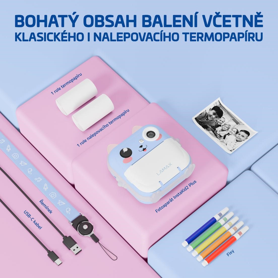 Objavte čaro zachytených okamihov, ktoré si vaše deti vytlačia počas pár sekúnd. Detský fotoaparát LAMAX InstaKid2 Plus s okamžitým tlačom nie je len roztomilý na pohľad. S českou aplikáciou, vysokým rozlíšením fotiek aj videa a sadou kreatívnych nástrojov sa stáva zábavným parťákom na výlety aj do izbičky. Deti si s ním nielen vyfotí svoje zážitky, ale ihneď si ich aj vytlačia, vyfarbia priloženými fixkami a lepia do denníka alebo kamkoľvek budú chcieť. Pomocou aplikácie zvládnu tlačiť fotky a poznámky z telefónu, skenovať texty zošitov, preklápovať snímky do animovaného štýlu alebo si s pomocou AI vyfarbiť čiernobiele obrázky. A keď si od fotenia chcú na chvíľu oddýchnuť? O zábavu sa postarajú aj vestavené hry.LAMAX InstaKid2 Plus fotoaparát podporuje kreativitu, samostatnosť aj hravé učenie a kto vie, možno práve tento foťák odštartuje kariéru vášho dieťaťa vo svete fotografie a filmu.