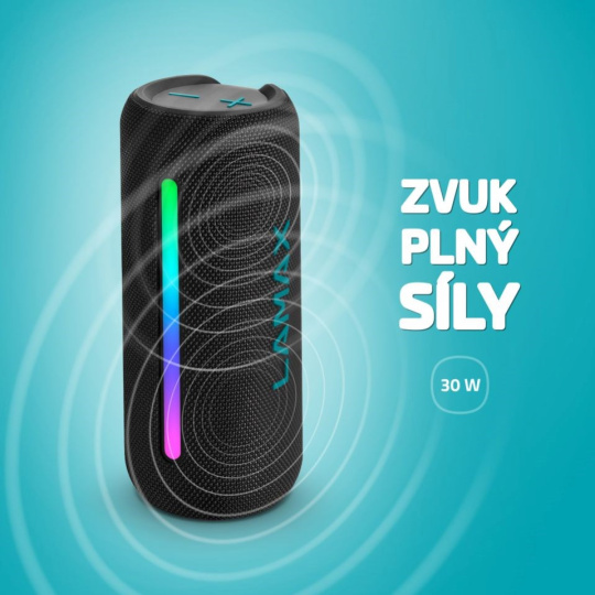 Naskoč na vlnu zábavy, s LAMAX LightNote1 to bude parádna jazda. V malom kompaktnom tele prenosného repráka sa ukrýva výkon až 30 W, ktorý ťa vydrží baviť až 20 hodín. Prepoj s ním svoje zariadenie cez Bluetooth 5.3 a uži si playlist, filmy alebo podcasty na maximum. Čistý a vyrovnaný zvuk ešte umocníš pripojením ďalšieho repráku, čo zariadi TWS funkcie. Máš súbory na microSD alebo iným zariadení? Pohoda, reprák podporuje rad pripojení aj formátov. A keď nemáš po ruke playlist, precvakni na FM rádio a žúr môže začať. Atmošku dotvorí LED podsvietenie. Ovládanie tohto maznáčika je jednoduchý a intuitívne. Keď hlási, že mu dochádza dych, energiu mu doplníš cez USB-C a zase s tebou pôjde, kam chceš. Pokojne vyrazte von, krytie IPX6 si poradí aj s vrtochmi počasia.