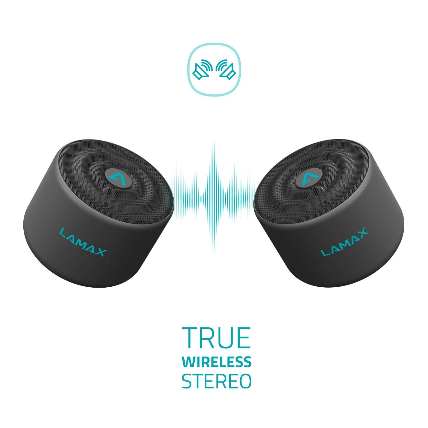 Vezmi ešte jeden LAMAX Sphere2 a pomocou funkcie TWS si sprav poriadnu stereo sústavu. Výkon sa ti znásobí a bez oneskorenia môžeš hrať hneď z dvoch reproduktorov.