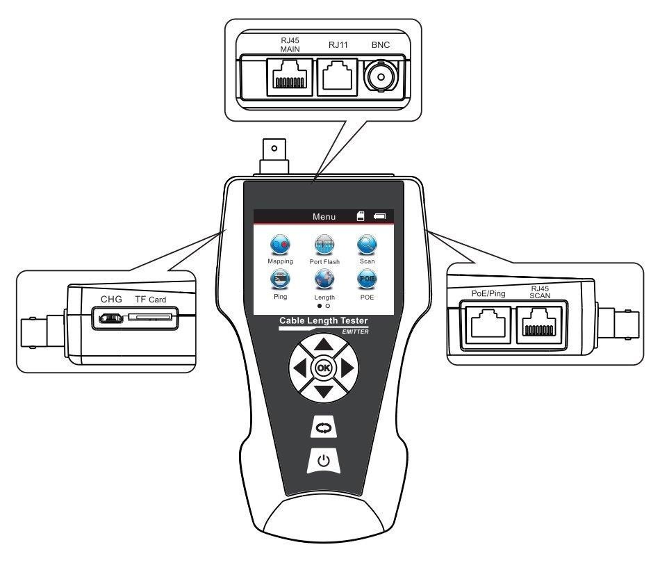 Pokročilý tester na testovanie a diagnostiku rôznych typov káblov/vedení. Využíva technológiu TDR (Time Domain Reflectometry) na presnú lokalizáciu a identifikáciu porúch v linkách. Zariadenie je vybavené veľkým LCD displejom, ktorý zobrazuje všetky relevantné informácie a podporuje viacjazyčné nastavenia. Okrem toho je vybavený vstavaným generátorom tónov a funkciou vyhľadávania portov, vďaka čomu je ideálny na testovanie sieťových káblov, telefónnych liniek a video káblov.