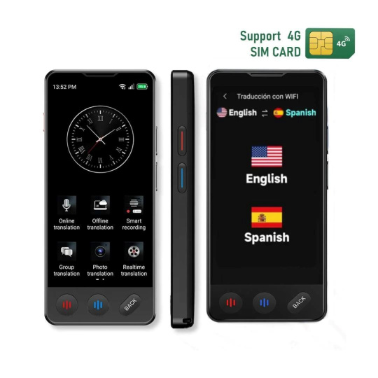 SMART AI Online / Offline hlasový + Foto prekladač vreckový (Preklad 138 jazykov) - Langie S3. Digitálny tlmočník do vrecka prenosný s podporou 4G SIM. LANGIE prichádza v novom modeli, ktorý je oproti svojmu predchodcovi LT-52 a S2 vybavený viacerými inováciami. Ako prvé si môžete všimnúť, úplnú zmenu dizajnu. AI smart prekladač sa viac podobá na smartphone, ovládanie je intuitívnejšie, obrazovka 4,1" väčšia, podpora bluetooth slúchadiel. Používanie je absolútne jednoduché a jeho používanie zvládnu aj najmenej technicky zdatný ľudia.