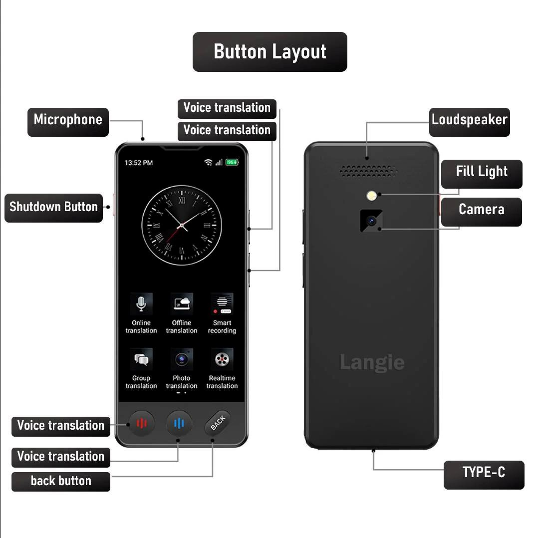 Funguje na úplne jednoduchom a intuitívnom princípe. Stačí podržať červené tlačítko na zariadení počas vyslovených slov, následne ho pustiť a zariadenie Vám preloží požadované vety. Langie S3 je vybavený vstavaným 4,1" dotykovým LCD displejom a systémom kvalitných reproduktorov a mikrofónov. Na zariadení je jeden mikrofón a reproduktor, prostredníctvom ktorého môžete hovoriť vo svojom vlastnom jazyku a človek vedľa vás (cudzinec) bude počuť preklad do jeho rodného jazyka. A naopak môže druhá osoba odpovedať vo svojom jazyku prostredníctvom mikrofónu a vy budete počuť preklad vo vašom rodnom jazyku.