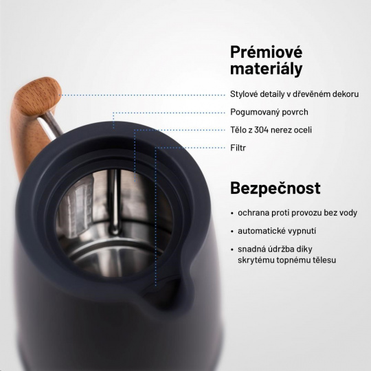 Konvice je vybavena pojistkou proti přehřátí i vaření bez vody.