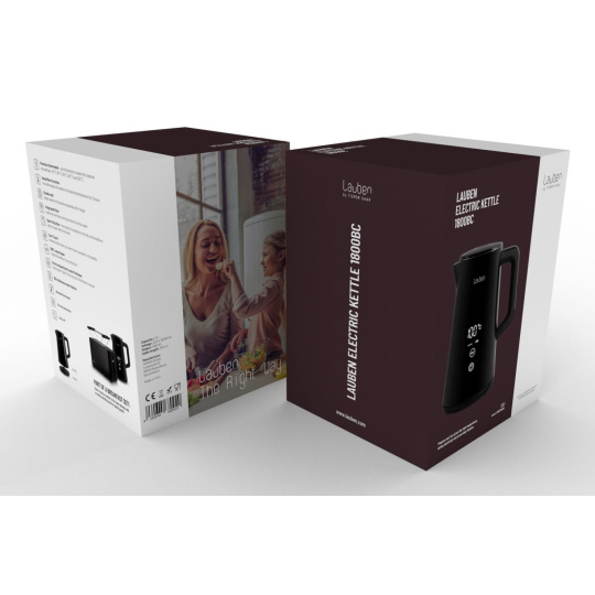 Voda přesně na míru nápojůmNepostradatelnou součástí kuchyní se stala rychlovarná konvice. I ta ale může být víc než jen užitečný domácí spotřebič. Lauben Electric Kettle 1800BC v dokonalém černém designu s velkým digitálním displejem je velmi praktická a zároveň působí jako stylový designový doplněk. Vodu v ní ohřejete přesně na požadovanou teplotu a díky přesnému termostatu a funkce Keep Warm ji udrží na stejné teplotě až po dobu 2 hodin. Ani pak jí však dvojité stěny nedovolí rychle zchladnout. Údržba konvice je snazší než kdy dřív, integrovaný filtr totiž zachytí mnohé nečistoty. Jako vždy myslíme i na bezpečnost, proto technologie Cool Touch zabraňuje popálení se o konvici a bezpečnostní pojistka přístroj ochrání proti přehřátí a vaření bez vody. Samozřejmostí je základna otočná o 360° s prostorem pro ukrytí kabelu.