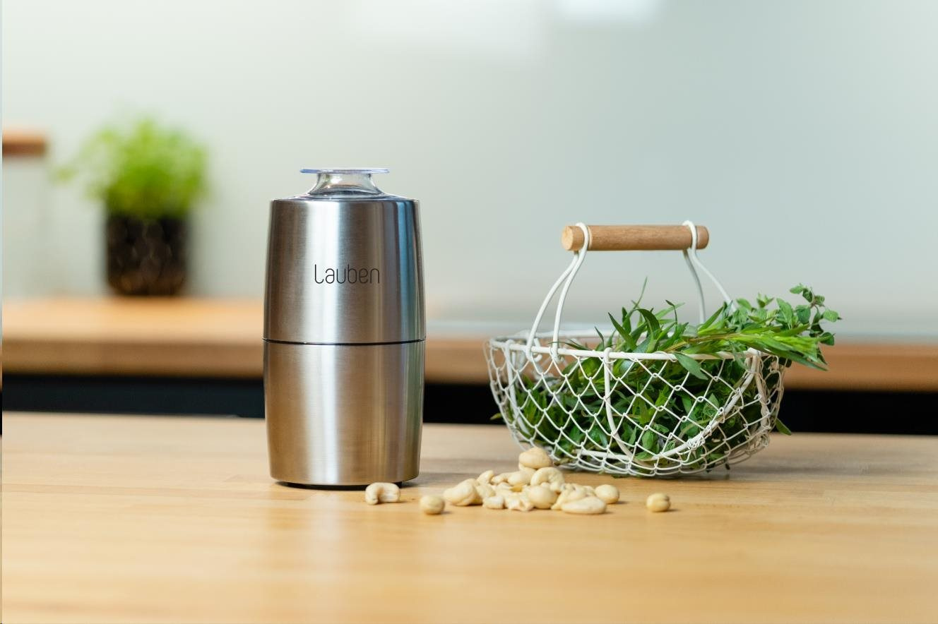 Srdcom mlýnku Lauben je tríštivý nôž z kvalitnej nerezovej ocele #304, ktorý zabezpečí rovnomerné pomletie surovín. Z rovnakého typu nerezovej ocele je vyrobené telo mlýnku aj mlecí pohár. Vysoká kvalita materiálov a spracovanie zabezpečujú dlhšiu životnosť mlýnku, ale aj uchovanie jedinečnej arómy po celú dobu prípravy. Tŕňom na dortu je minimalistický a elegantný dizajn mlýnku, ktorý sa bude vynímať vo vašej kuchyni.