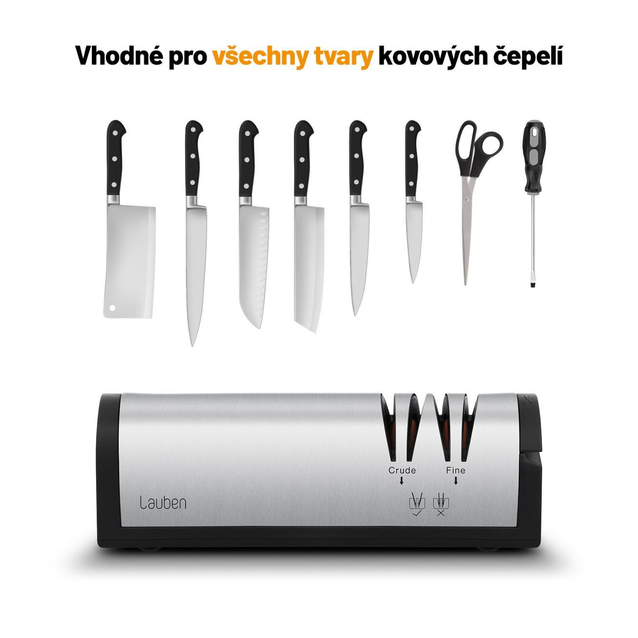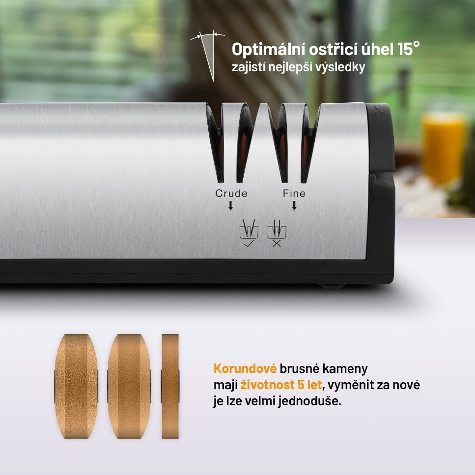 Vďaka Lauben Nôž na ostrenie 4700SB naostráte väčšinu nožov a sekáčov v pohodlí domova. Pridali sme aj špeciálnu zásuvku na brúsenie nôžok, aj s tými sa teda bruska Lauben poradí. Bruska umožňuje dva stupne brúsenia – hrubé a hladké doostrenie. Vďaka vodivým drážkam na udržanie správneho sklonu a optimálnemu brusnému uhlu 15° zvládnete dokonale naostriť každé ostrie ako profesionál. Stačí zapojiť brusku, spustiť ju a vložiť ostrie, ktoré chcete naostriť.