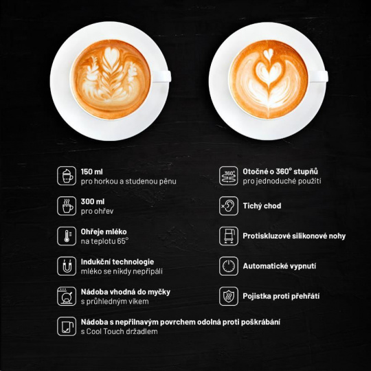 Penič mlieka Lauben je vybavený funkciou automatického vypnutia a ochranou proti prehriatiu. Nemusíte sa teda báť príliš vysokej teploty mlieka alebo peny. Vďaka indukčnej technológii ohrevu sa mlieko nikdy nepodpaľí. Teší vás i možnosť umývania v umývačke riadu a tichý chod, ktorý oceníte hlavne ráno.