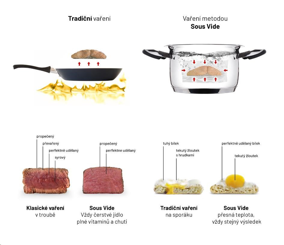 Metóda sous vide pri varení zachováva všetky živiny a vitamíny, na prípravu jedla nepotrebujete žiadny tuk.