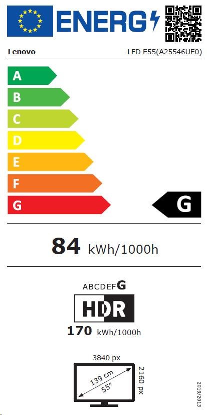 LENOVO LCD E55 - 54.6”,VA,matný,16:9,3840x2160,60Hz,8ms,400cd/m2,5000:1,HDMI,DP,USB-C,RJ45,USBHub,VESA