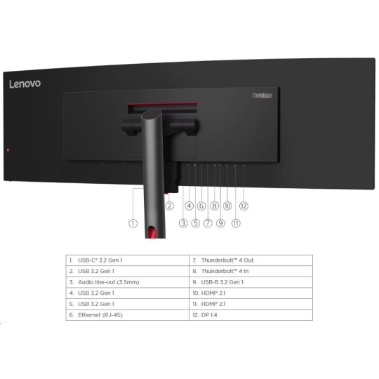 LENOVO LCD P49w-30 - 49”,IPS,matný,16:9,5120x1440,60Hz,4ms/6ms,350cd/m2,2000:1,HDMI,DP,USB-C,ThB,RJ45,USBHub,Pivot,VESA