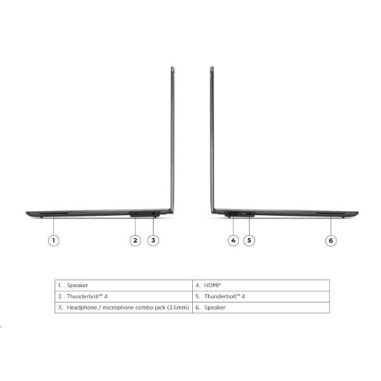 | Standartné porty | 2x USB-C® (Thunderbolt™ 4 / USB4® 40Gbps), with USB PD 3.0 and DisplayPort™ 2.1 1x HDMI® 2.1, up to 4K/60Hz 1x Headphone / microphone combo jack (3.5mm) |