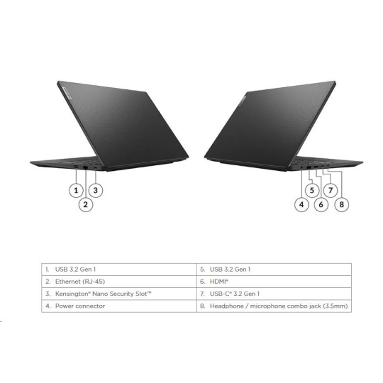 | Standartné porty | 2x USB 3.2 Gen 1 1x USB-C® 3.2 Gen 1 (support data transfer, Power Delivery (20V only) and DisplayPort™ 1.2) 1x HDMI® 1.4b 1x Headphone / microphone combo jack (3.5mm) 1x Ethernet (RJ-45) 1x Power connector |
