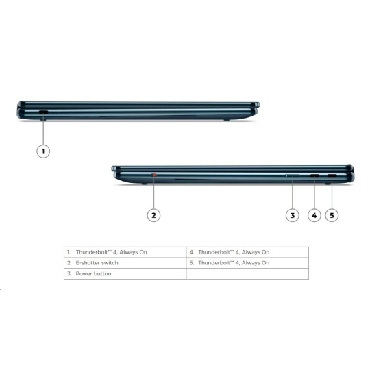 | Standartné porty | 3x USB-C® (Thunderbolt™ 4 / USB4® 40Gbps), with USB PD 3.0 and DisplayPort™ 2.1, Always On |